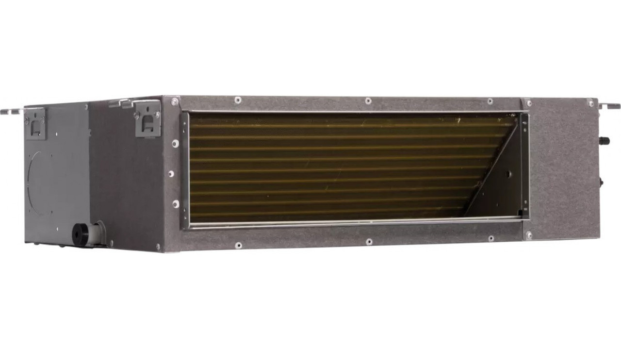 - Монтується в міжстельовий простір, забезпечує приховану установку з можливістю розподілу повітря по кількох приміщеннях або зонах через систему повітропроводів;